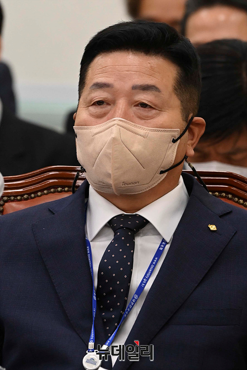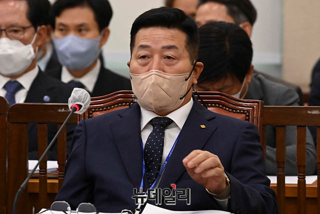 김일수 한국소방산업기술원 원장이 5일 오전 국회에서 열린 행정안전위원회의 한국소방산업기술원에 대한 2022년도 국정감사에서 자료를 살펴 보고 있다.