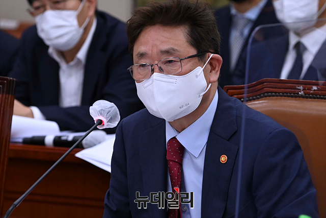 박보균 문화체육관광부 장관이 5일 오전 국회에서 열린 문화체육관광위원회의 문화체육관광부에 대한 2022년도 국정감사에서 의원들의 질의에 답하고 있다.