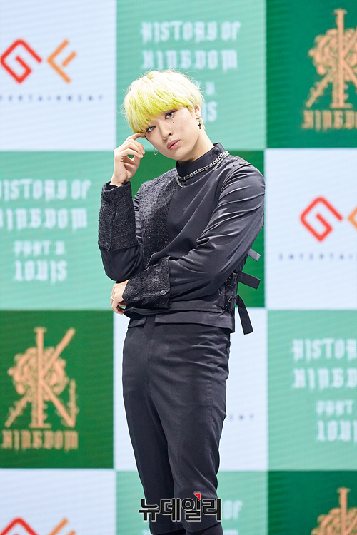 아이돌그룹 킹덤 아서가 5일 오후 서울 광진구 예스24 라이브홀에서 열린 다섯 번째 미니앨범 '히스토리 오브 킹덤:파트 5. 루이' 발매기념 쇼케이스에서 포즈를 취하고 있다. (사진=GF엔터테인먼트)