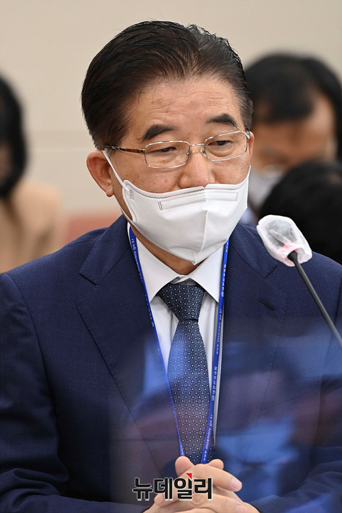 조한규 시청자미디어재단 이사장이 6일 오전 국회에서 열린 시청자미디어재단에 대한 2022년도 국정감사에서 의원들의 질의를 듣고 있다.