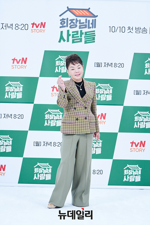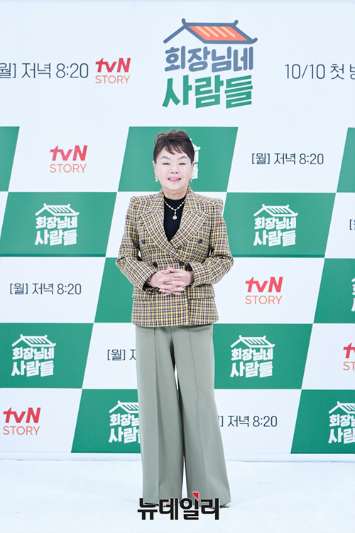 배우 김수미가 6일 온라인으로 열린 tvN STORY 예능 '회장님네 사람들' 제작발표회에서 포토타임을 갖고 있다.