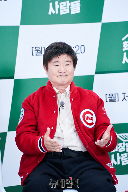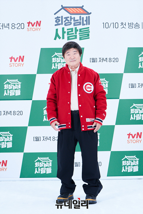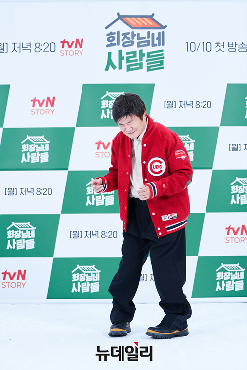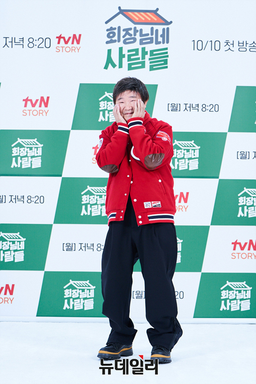 배우 이계인이 6일 온라인으로 열린 tvN STORY 예능 '회장님네 사람들' 제작발표회에서 포토타임을 갖고 있다.