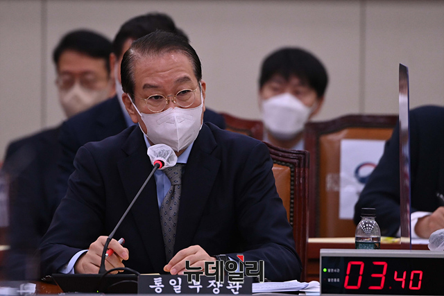 권영세 통일부 장관이 7일 오전 국회에서 열린 외교통일위원회의 통일부에 대한 2022년도 국정감사에서 의원들의 질의에 답변하고 있다.