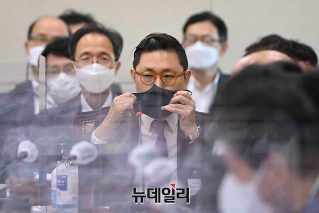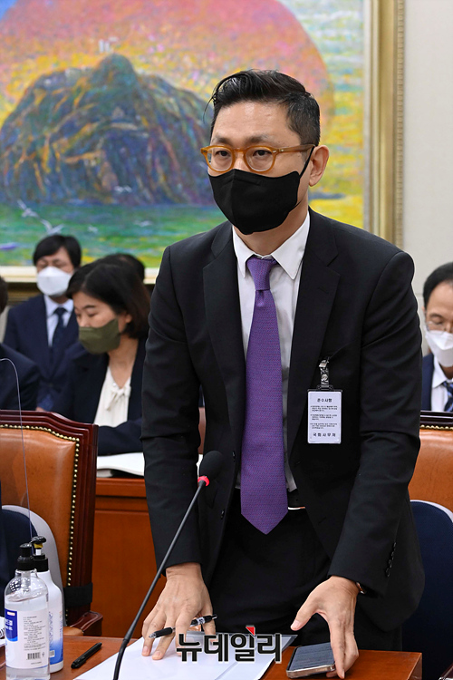 안철현 애플코리아 대외협력총괄 부사장이 7일 오후 국회에서 열린 정무위원회의 공정거래위원회, 한국공정거래조정원, 한국소비자원 등에 대한 2022년도 국정감사에서 증인으로 참석해 의원들의 질의를 듣고 있다.