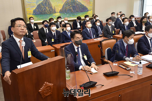 임금옥 BHC 대표이사가 7일 오후 국회에서 열린 정무위원회의 공정거래위원회, 한국공정거래조정원, 한국소비자원 등에 대한 2022년도 국정감사에서 증인으로 참석해 의원들의 질의를 답변 하고 있다.