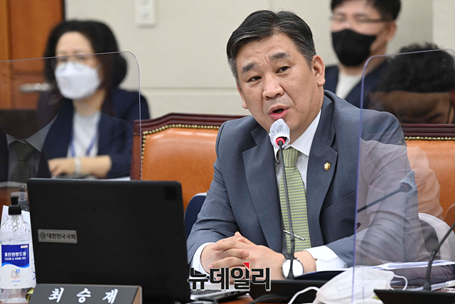 최승재 국민의힘 의원이 7일 오후 국회에서 열린 정무위원회의 공정거래위원회, 한국공정거래조정원, 한국소비자원 등에 대한 2022년도 국정감사에서 증인들에게 질의를 하고 있다.