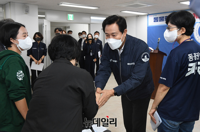 [포토] 서울시 동물보호 수사업무 발대식 참석한 오세훈