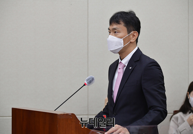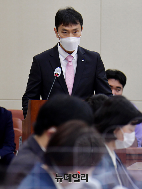 이복현 금융감독원장이 11일 국회에서 열린 정무위원회의 금융감독원에 대한 국정감사에서 업무보고를 하고 있다.