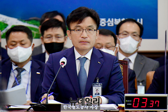 나희승 한국철도공사 사장이 11일 국회에서 열린 국토교통위 국정감사에서 의원들의 질문에 답하고 있다.