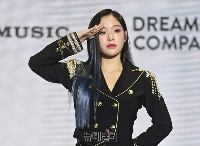 드림캐쳐 가현이 11일 오후 서울 광진국 건국대학교 새천년관에서 열린 7번째 미니앨범 '아포칼립스:팔로우어스' 쇼케이스에서 포즈를 취하고 있다.