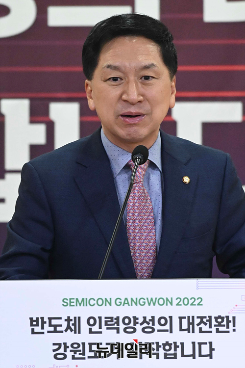김기현 국민의힘 의원이 11일 오후 국회 의원회관에서 진행된 '반도체 인력양성의 대전환! 강원도가 시작합니다' 토론회에서 축사를 하고 있다.