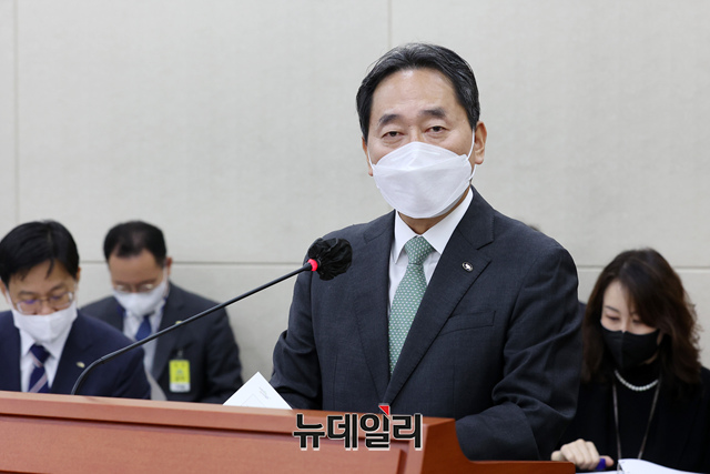 김태현 국민연금공단 이사장이 11일 국회에서 열린 보건복지위원회의 국민연금공단과 한국사회보장정보원에 대한 국정감사에서 업무보고를 하고 있다. (공동취재사진)