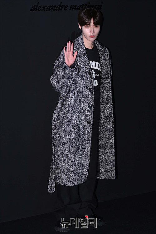 배우 황인엽이 11일 오후 서울 종로구 광화문광장 육조마당에서 열린 아미 패션쇼 행사에서 포즈를 취하고 있다.