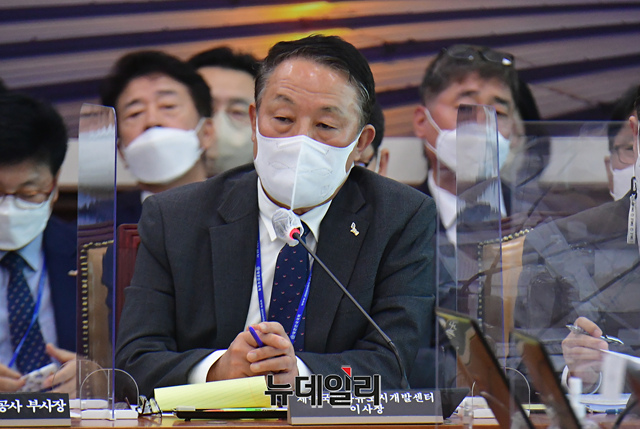 양영철 제주국제자유도시개발센터 이사장이 12일 국회에서 열린 국토교통위원회의 한국부동산원 등에 대한 국정감사에서 의원들의 질문에 답하고 있다.