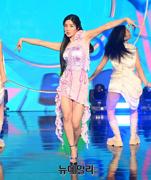 아이즈원 출신 권은비가 12일 오후 서울 강남구 일지아트홀에서 열린 3번째 솔로 미니앨범 'Lethality(리탈리티)' 쇼케이스에서 수록곡 무대를 선보이고 있다.