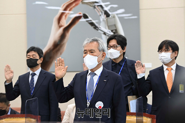 이백만 한국방송광고진흥공사 사장이 13일 오전 국회에서 열린 과학기술정보방송통신위원회의 한국방송광고진흥공사에 대한 2022년도 국정감사에서 증인 선서를 하고 있다.