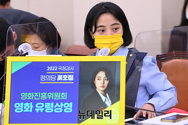 류호정 정의당 의원이 13일 오전 국회에서 열린 문화체육관광위원회의 한국콘텐츠진흥원, 한국문화정보원, 한국문화관광연구원 등에 대한 2022년도 국정감사에서 질의를 하고 있다.