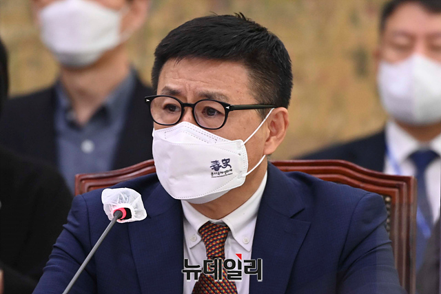박기용 영화진흥위원회 위원장이 13일 오전 국회에서 열린 문화체육관광위원회의 영화진흥위원회에 대한 2022년도 국정감사에서 의원들의 질의에 답변하고 있다.