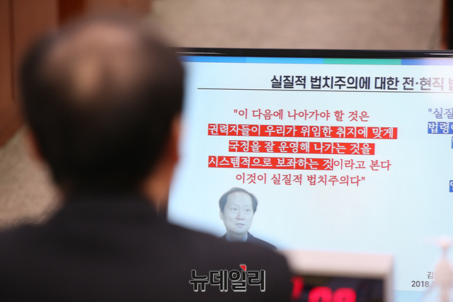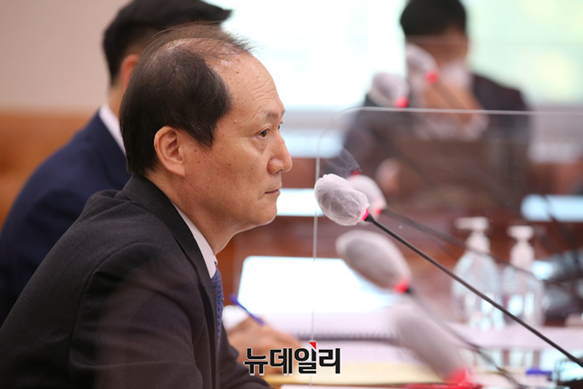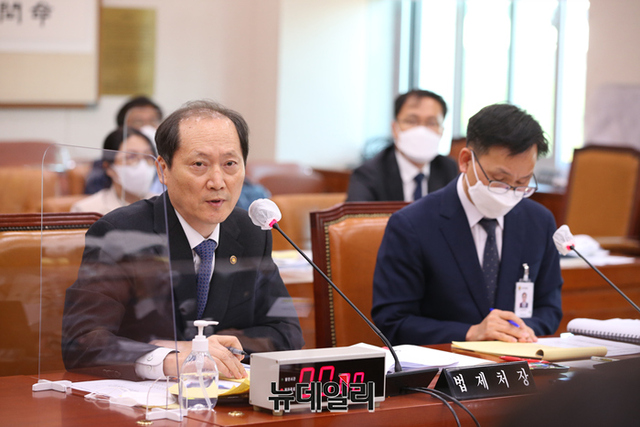이완규 법제처장이 13일 국회에서 열린 국회 법제사법위원회 국정감사에서 질의에 답하고 있다.