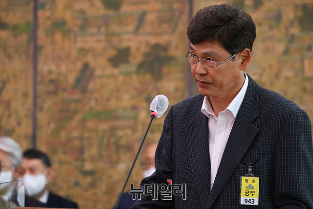 윤상필 한국통신사업자연합회 대외협력실장이 13일 오후 국회에서 열린 문화체육관광위원회의 한국통신사업자연합회에 대한 2022년도 국정감사에서 참고인으로 출석해 의원들의 질문에 답변하고 있다.