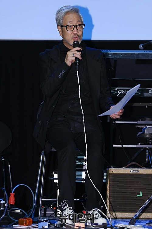 록밴드 봄여름가을겨울 멤버 김종진이 14일 오후 서울 마포구 CJ아지트 광흥창에서 열린 20주년 바이닐(LP) 앨범 '브라보 마이 라이프' 발매기념 기자회견에서 발언을 하고 있다.이번 바이닐 앨범 '브라보 마이 라이프'는 2002년 1월 2일에 발표된 정규 7집으로 봄여름가을겨울 20주년을 맞아 김종진이 소장하고 있던 20년 전 마스터 테이프를 새로 믹싱해 제작 했다.봄여름가을겨울은 1일 출시된 바이닐 앨범 발매를 기념해 15일 두 차례 기념 공연을 펼칠 예정이다.