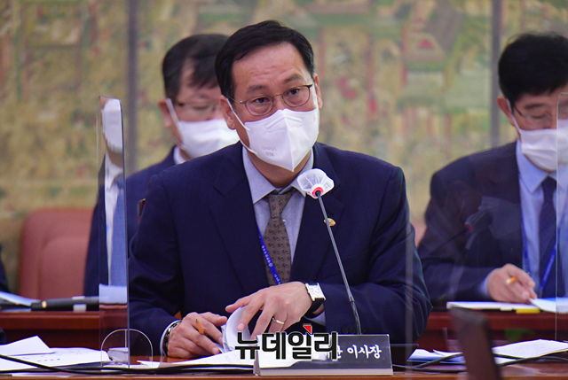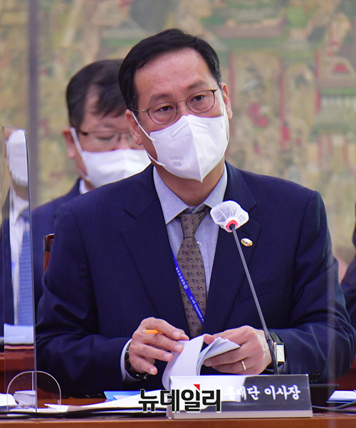 오응환 태권도진흥재단 이사장이 14일 국회에서 열린 문화체육관광위원회의 대한체육회 등에 대한 국정감사에서 의원들의 질문에 답하고 있다.
