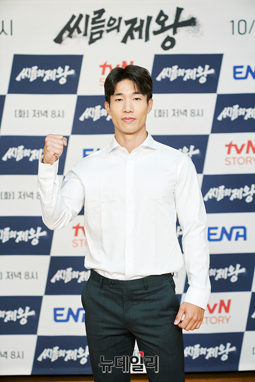 소방관 홍범석이 18일 오전 온라인으로 열린 tvN STORY&ENA 예능 '씨름의 제왕(연출 전성호, 황민숙)' 제작발표회에서 포즈를 취하고 있다.