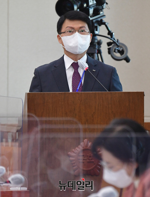 진승호 한국투자공사 사장이 19일 국회에서 열린 기획재정위원회의 한국수출입은행, 한국조폐공사, 한국투자공사, 한국재정정보원, 국제원산지정보원에 대한 국정감사에서 업무보고를 하고 있다.