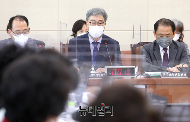 김미곤 한국노인인력개발원장이 19일 국회 보건복지위원회에서 열린 한국노인인력개발원 등 7개 산하기관 국정감사에서 의원 질의에 답변하고 있다. (공동취재사진)