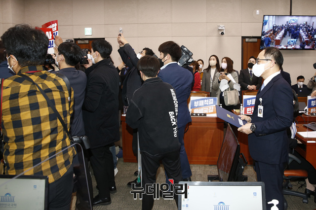 이원석 검찰총장이 20일 국회에서 열린 법제사법위원회의 대검찰청에 대한 국정감사에서 증인 선서를 마친 후 선서문을 김도읍 위원장에게 제출하기 위해 이동하고 있다.