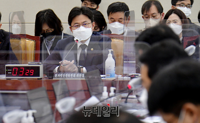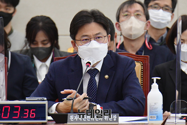유국희 원자력안전위원회 21일 국회에서 열린 과학기술정보방송통신위원회의 국정감사에 출석해 의원들의 질문에 답하고 있다.