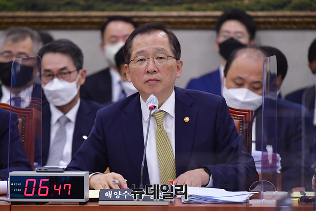 조승환 해양수산부 장관이 21일 국회에서 열린 농림축산식품해양수산위원회의 해양수산부 및 소관 기관에 대한 종합감사에서 의원들의 질문에 답하고 있다.