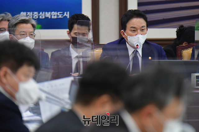 원희룡 국토교통부 장관이 21일 국회에서 열린 국토교통위원회의 국토교통부 등에 대한 종합감사에서 의원들의 질문에 답하고 있다.