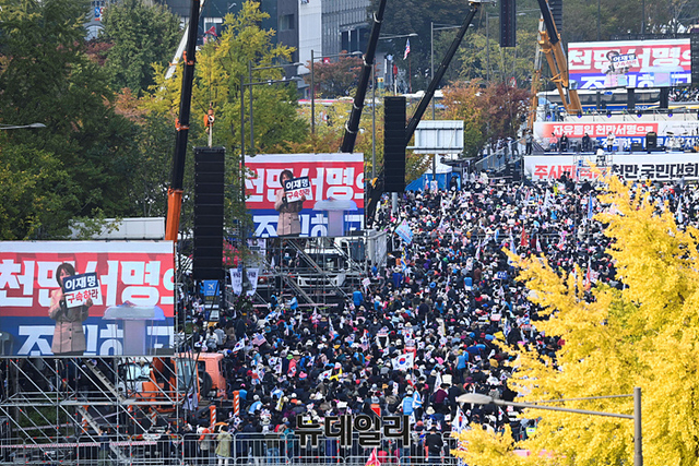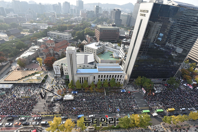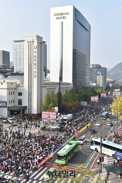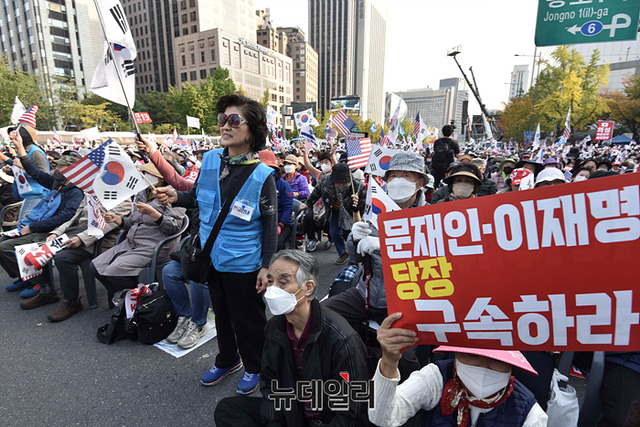 이날 서울 광화문 앞 세종대로 일대에는 우파단체와 좌파단체가 동시에 집회를 열어 경찰은 충돌에 대비했다.