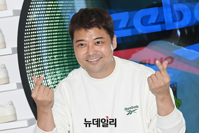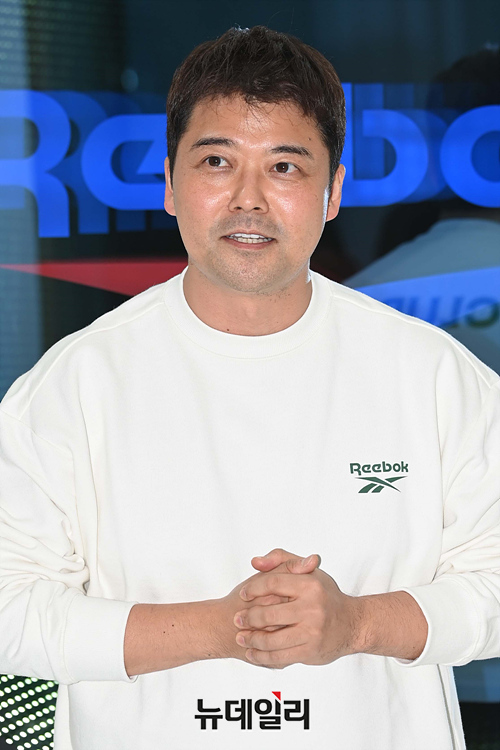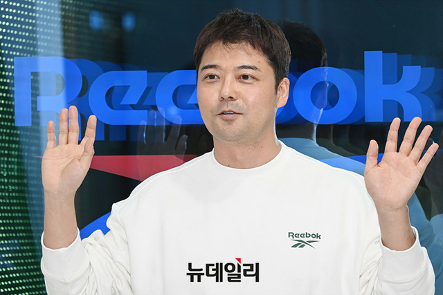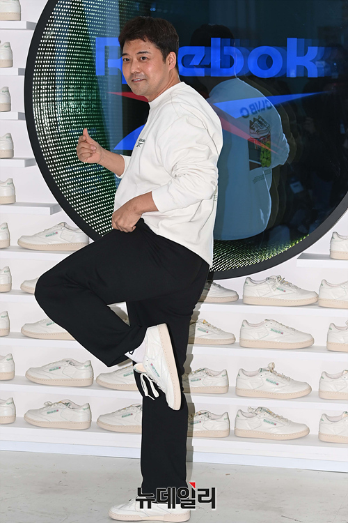방송인 전현무가 22일 오후 서울 성동구 퓨처 소사이어티에서 열린 '리복 런칭 파티 셀럽'에서 열린 행사에서 포즈를 취하고 있다.