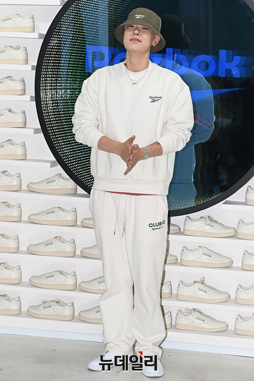 가수 젤로가 22일 오후 서울 성동구 퓨처 소사이어티에서 열린 '리복 런칭 파티 셀럽'에서 열린 행사에서 포즈를 취하고 있다.