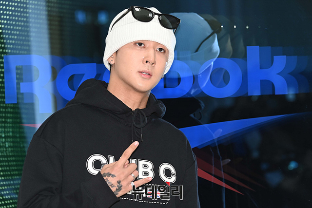 가수 라비가 22일 오후 서울 성동구 퓨처 소사이어티에서 열린 '리복 런칭 파티 셀럽'에서 열린 행사에서 포즈를 취하고 있다.
