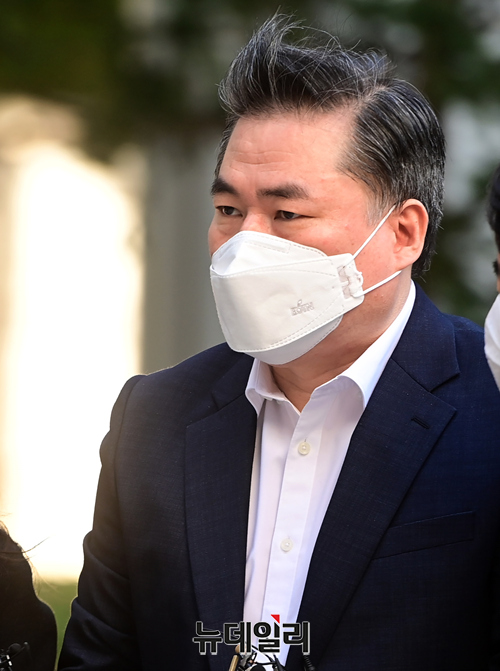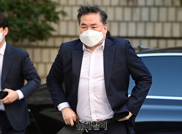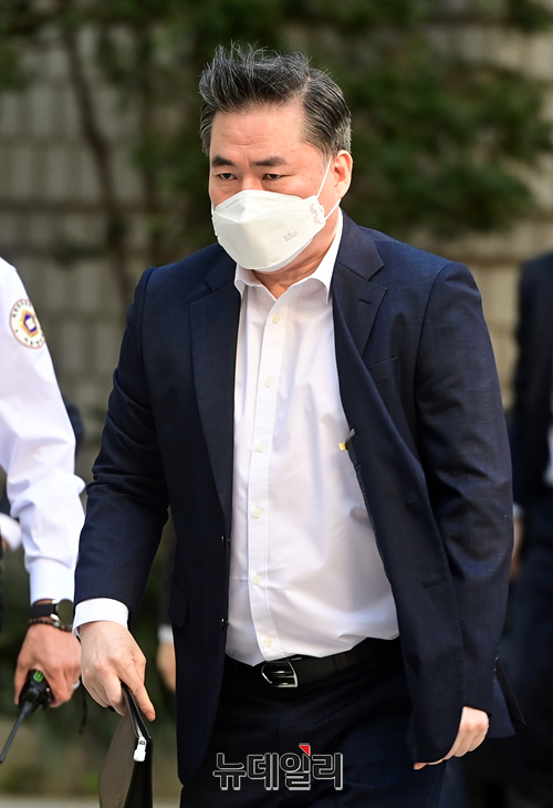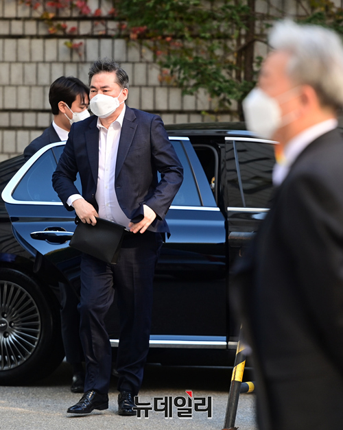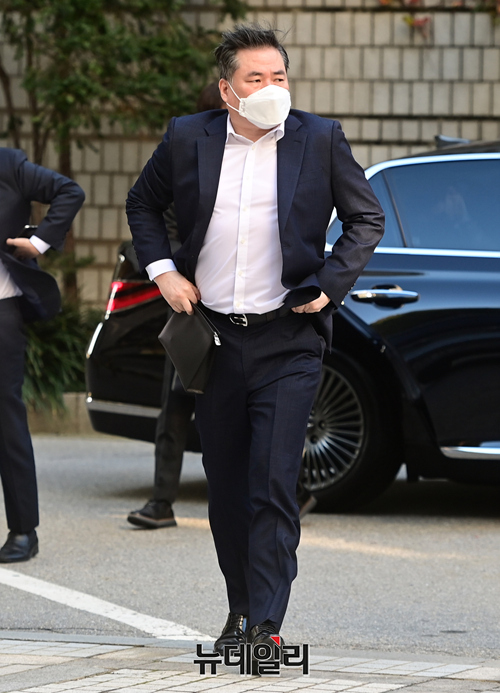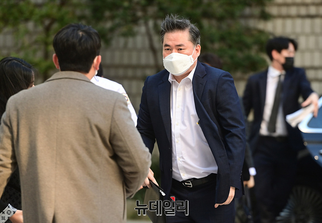 유동규 전 성남도시개발공사 본부장이 24일 오전 서울 서초구 서울중앙지법에서 열린 공판에 출석하기 위해 법원으로 입장하고 있다.