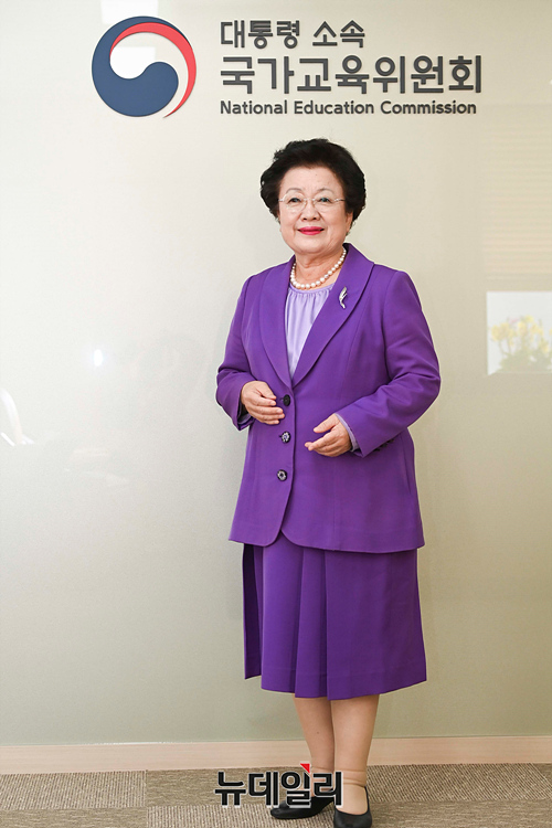 이배용 초대 국가교육위원회 위원장이 18일 오후 서울 종로구 정부서울청사 국가교육위원회에서 뉴데일리와 인터뷰를 갖고 있다.이 위원장은 "국가교육위원회의 설립 목적에 부합되게 장기적인 교육발전 계획 수립과 교육제도 및 정책에 대한 국민적 여론을 수렴하겠다"며 "교육정책에 반영하는 역할을 하겠다"고 말했다.이어 "교육 제도의 개선, 학제, 입시제도, 평생 학습 체제 등 우리의 교육 과정을 비롯해 유치원, 초등, 중등, 대학에 단계적인 교육의 정책과 방향에 대해 다양한 분야를 포괄적으로 국교위가 다뤄야 할 부분이다"고 밝혔다.
