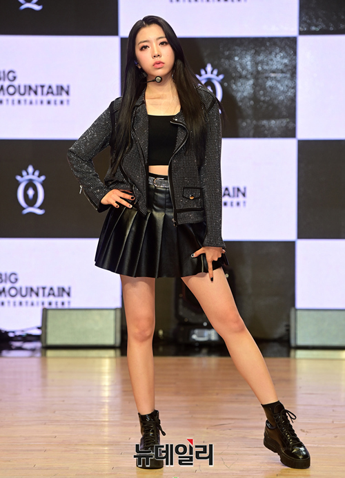 신인 걸그룹 '퀸즈아이(Queenz Eye)' 다민이 24일 오후 서울 강남구 일지아트홀에서 열린 데뷔 쇼케이스에서 포토타임을 갖고 있다.