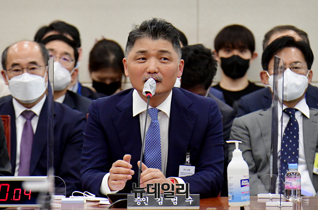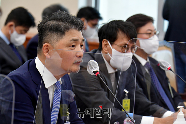 김범수 카카오 미래이니셔티브센터장이 24일 국회에서 열린 과학기술정보통신부 및 소관 감사대상기관 등에 대한 종합감사에 출석해 의원들의 질문에 답하고 있다.