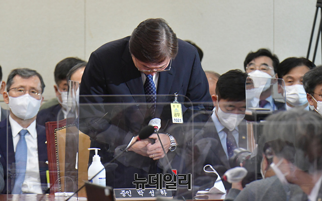 박성하 SK C&C 대표이사가 24일 국회에서 열린 과학기술정보방송통신위원회의 과학기술정보통신부 및 소관 감사대상기관에 대한 종합감사에서 데이터센터 화재 관련 사과를 하고 있다.