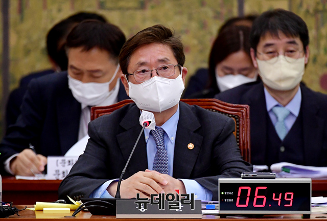 박보균 문화체육관광부 장관이 24일 국회에서 열린 문화체육관광위원회의 문화체육관광부, 문화재청 및 유관기관에 대한 국정감사 종합감사에서 의원들의 질문에 답하고 있다.