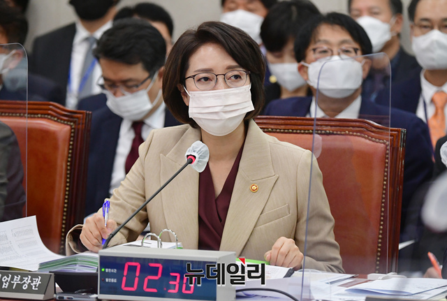 이영 중소벤처기업부 장관이 24일 국회 산업통상자원중소벤처기업위원회에서 열린 중소벤처기업부, 특허청 등에 대한 국정감사에서 의원들의 질문에 답하고 있다.
