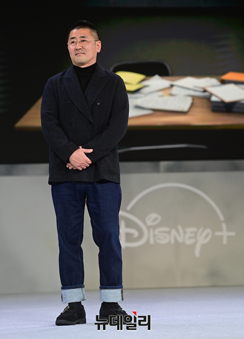 한동화 감독이 25일 오전 서울 강남구 그랜드 인터컨티넨탈 서울 파르나스에서 열린 디즈니+ 오리지널 시리즈 '형사록(감독 한동화)' 제작발표회에서 포즈를 취하고 있다.