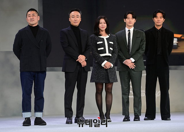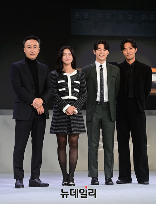 배우 이성민(왼쪽부터), 경수진, 이학주, 진구가 25일 오전 서울 강남구 그랜드 인터컨티넨탈 서울 파르나스에서 열린 디즈니+ 오리지널 시리즈 '형사록(감독 한동화)' 제작발표회에서 포즈를 취하고 있다.