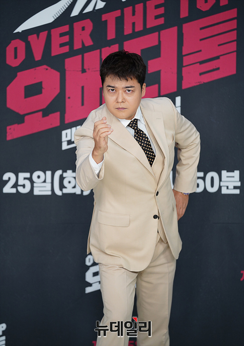 방송인 전현무가 25일 오전 온라인으로 열린 JTBC 신규 예능 '오버 더 톱(연출 박성환)' 제작발표회에서 포즈를 취하고 있다.