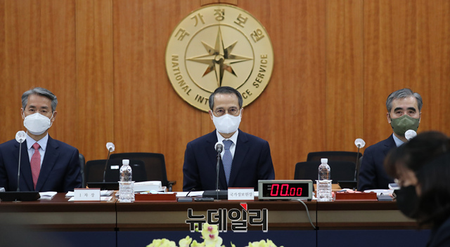 김규현 국가정보원장이 26일 서울 서초구 내곡동 국가정보원 청사에서 열린 국회 정보위원회의 국가정보원에 대한 국정감사에 출석해 시작을 기다리고 있다. (공동취재사진)