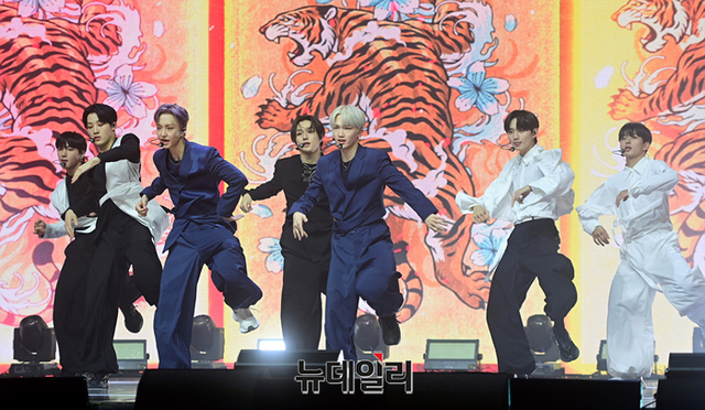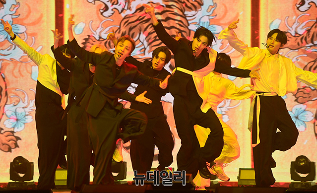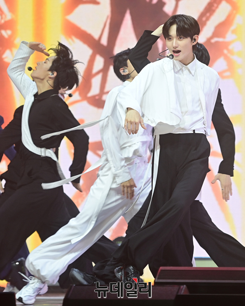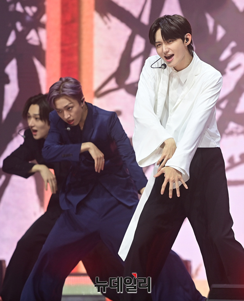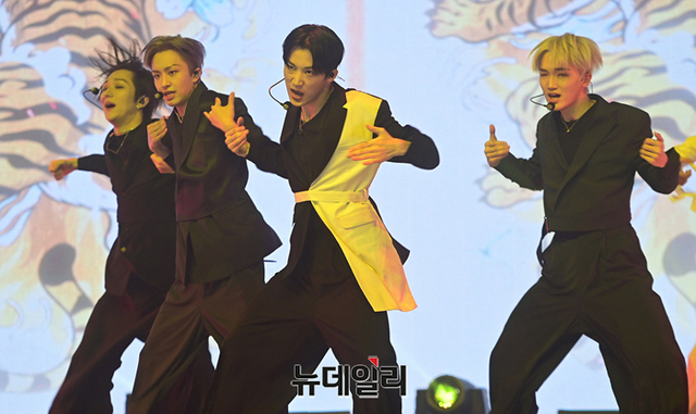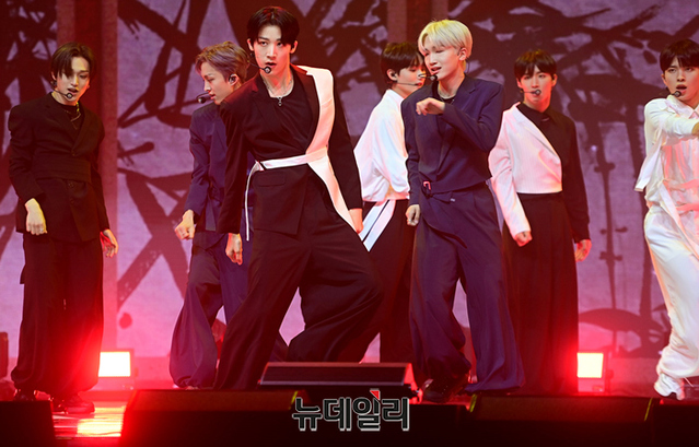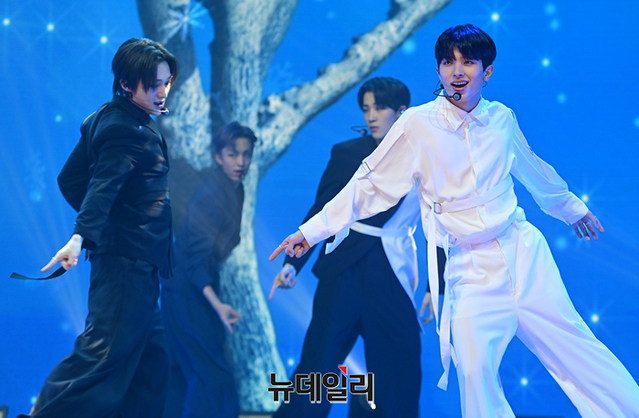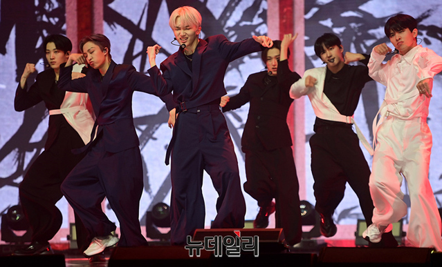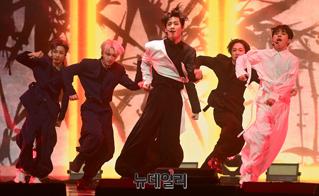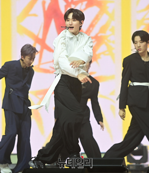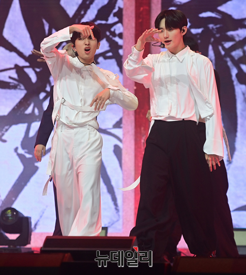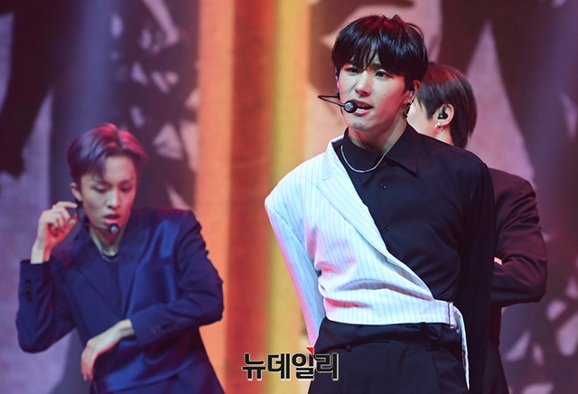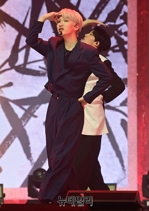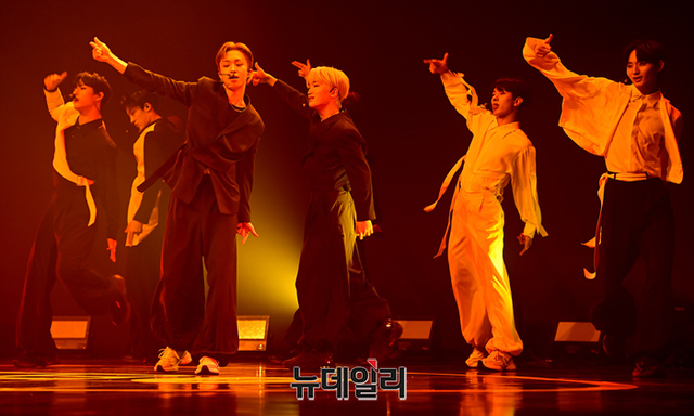 아이돌그룹 ATBO가 26일 오후 서울 광진구 예스24라이브홀에서 열린 미니 2집 '더 비기닝:시작' 쇼케이스에서 타이틀곡 무대를 선보이고 있다.