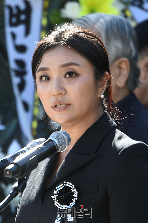 김소연 변호사가 26일 오전 서울 동작구 국립서울현충원에서 열린 박정희 대통령 43주기 추도식에서 추도사를 하고 있다.